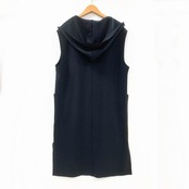 CYNICAL ロングジレ 日本製 410-95503 着やせ ツヤのあるダンボール生地 フード付きベスト 軽量 伸縮性 上品 キレイ目 フリーサイズ