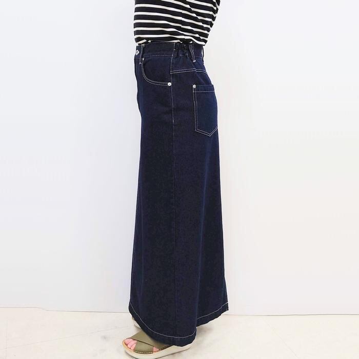 ZAMPA デニムタイトスカート 33-0064 ザンパ ロング ウエストゴム 後ろスリット ストレッチ フリーサイズ オールシーズン 無地 定番 万能