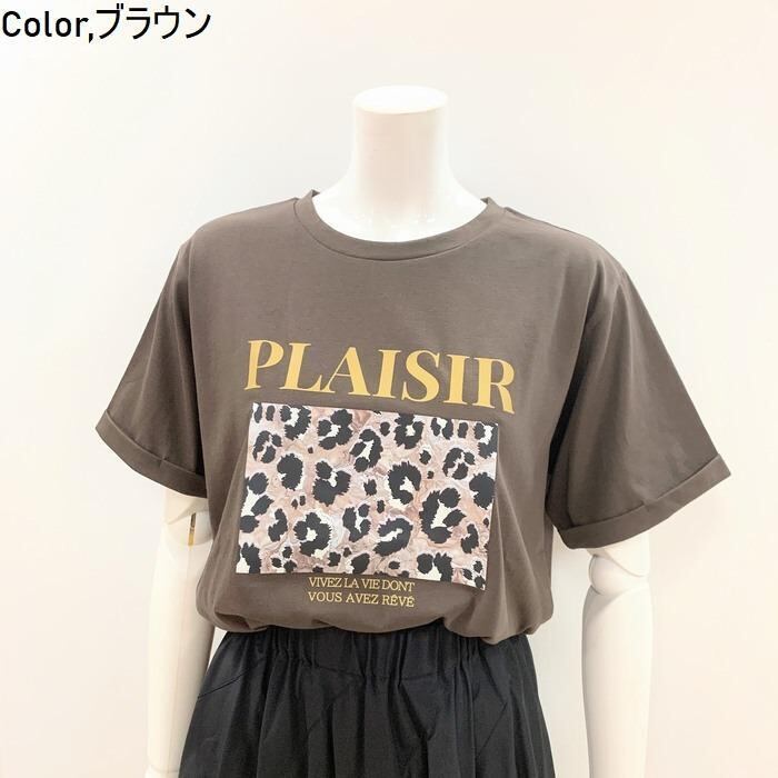 胸元のレオパード柄がアクセントのプリントTシャツ。