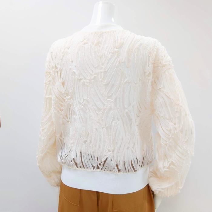 ROSIEE 刺繍レースカーディガン R031204 リボンレース メッシュ Vネック 袖リブ アンサンブル対応 洗える フリー 美しい 上品 キレイ目 華やか