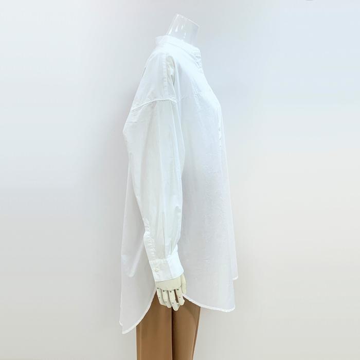 ロングワイドシャツ 021-87420 Lui Chantant チュニック 白ブラウス プルオーバー 洗える 綿100 無地 ストライプ バンドカラー スタンドカラー オールシーズン | marsh*mallow