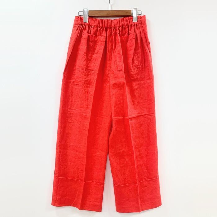 リネンワイドストレートパンツ 24-0020 zampa ザンパ 洗える 麻100 夏用ボトム 涼しい RED 赤 ゴム フリー ロング 10分丈 9分丈 8分丈
