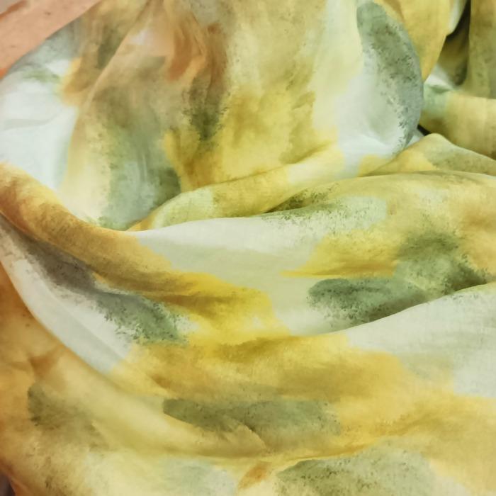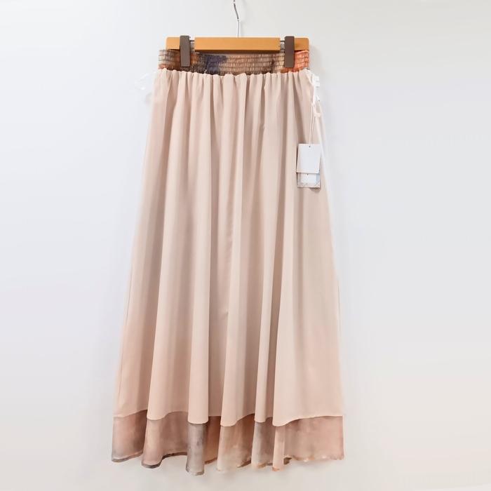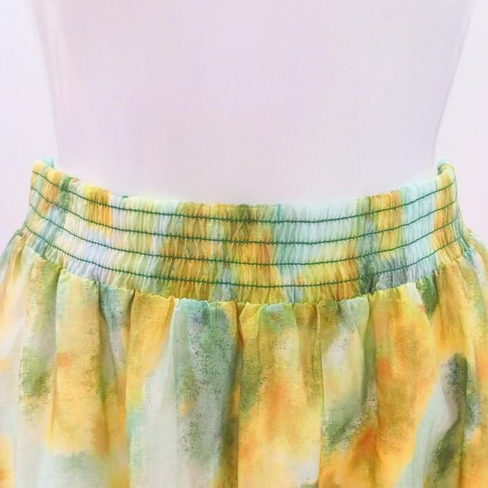 水彩画で描かれたような柄が印象的で透明感のあるフレアスカート