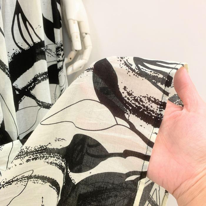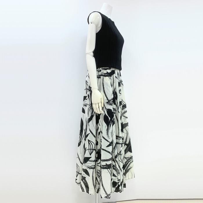 CYNICAL モダンプリントフレアスカート 412-96063 綿100 ボタニカル アート柄 涼しい 夏用 ロング 裏地付き 軽い 洗える 華やか きれいめ