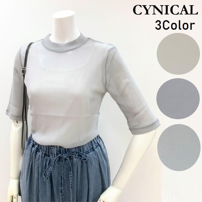 ラメシアー5分袖カットソー 450-95512 cynical シニカル ハイネック スタンドカラー タートル 伸縮性 軽い 洗える カッコイイ クール 重ね着 インナー | marsh*mallow
