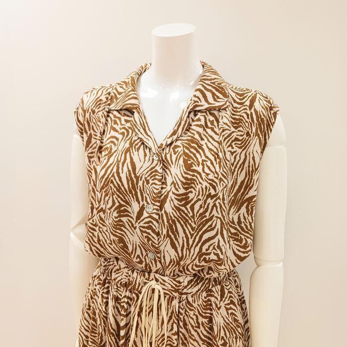 ゼブラ柄ノースリーブ ブラウス 31-0138 zampa ジレ ベスト 前開き 開襟 アニマル セットアップ対応 柔らかい 軽い 長め 3シーズン 春夏秋 WILD COOL 洗える | marsh*mallow