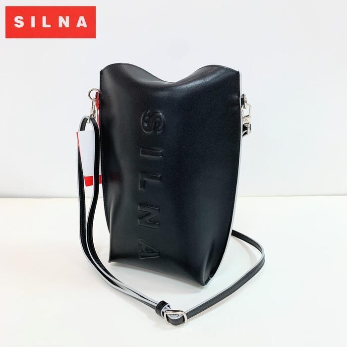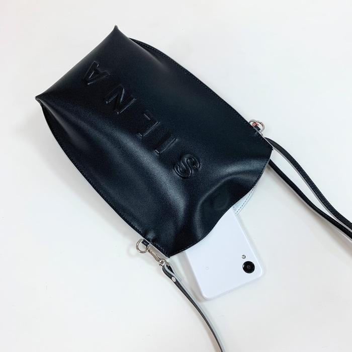 マルチケース BIG SILNA_minacolo sz1501-2 牛革 ボディバッグ 縦型 ショルダーバッグ mini BAG 黒シルバー