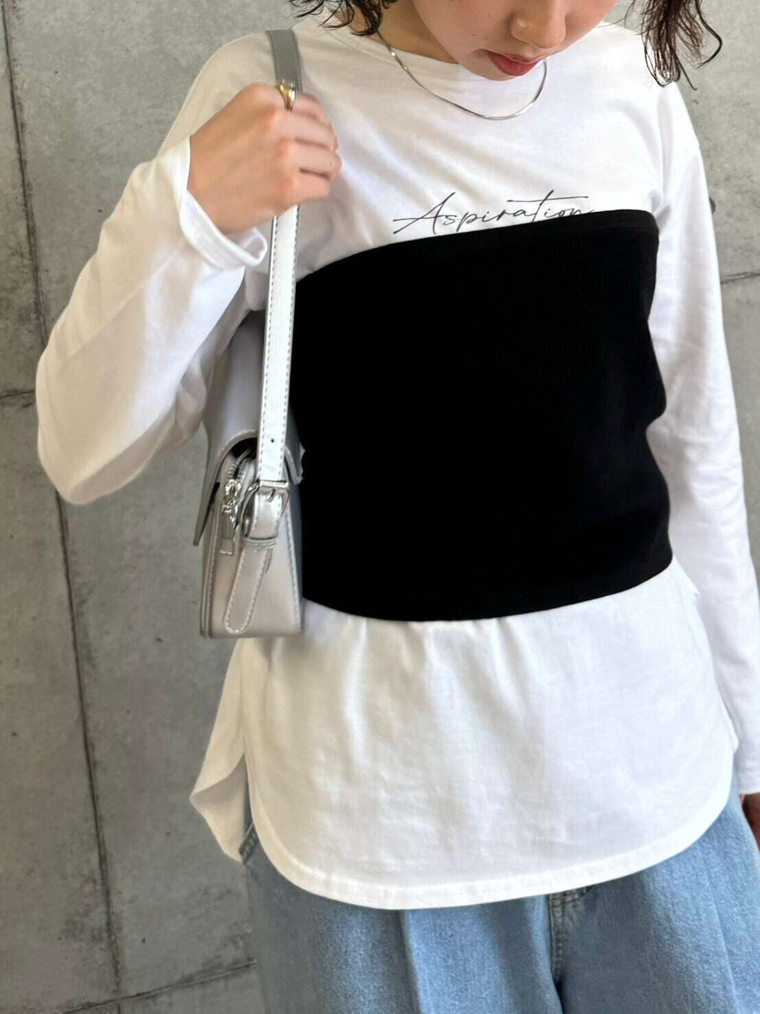 コンパクトなTシャツにレイヤードしたり、シャツやサロペットのインナーにも使える万能アイテム。