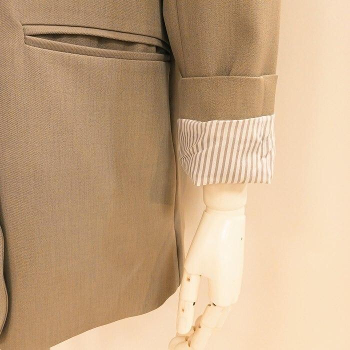 袖にはストライプ柄の裏地がついており、袖をまくった時にもワンポイントに。