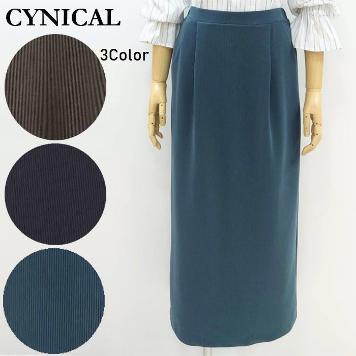 CYNICAL タック入りリブタイトスカート 日本製 450-96516 シニカル ロングスカート ウエストゴム 伸縮 光沢 洗える 秋冬