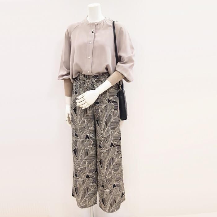 ROSIEE リーフ柄ワイドパンツ R033231 ロージー 洗える 軽い 裏地付き ポッケ付 サラサラ リゾート 夏 秋 旅行 プレゼント 母の日 黒 ベージュ ボタニカル