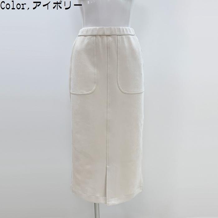 ROSIEE フェイクスウェードタイトスカート R582734 ロージー 洗えるキレイ目タイトskirt ハイウエスト ロング 8分丈 ゴム ストレッチ 白 ライトグレー 春秋冬