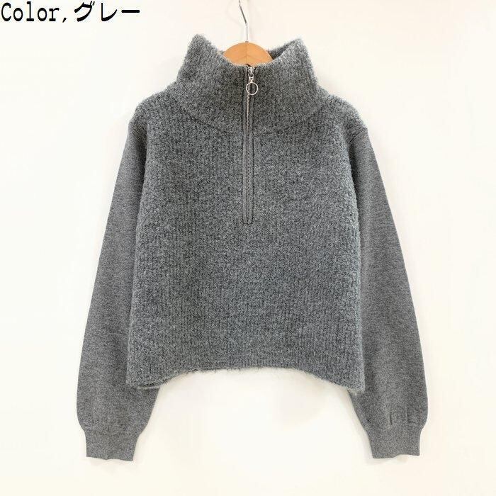 ROSIEE ブークレハーフジップニット R081212 ロージー 洗える ショート丈KNIT スタンドカラー 暖かい かわいい レディース 春秋冬