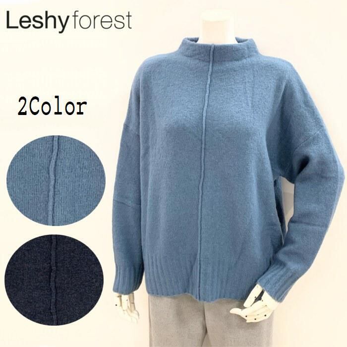 ニット 3350-308-26 Leshy Forest ウール ヤク混 最軽量 暖かい スタンドカラー ゆったり ブルー ネイビー 水色 紺色 Knit 春秋冬 レディース トップス