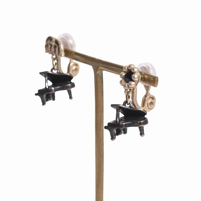 グランドピアノとペダル記号を組み合わせたイヤリング。