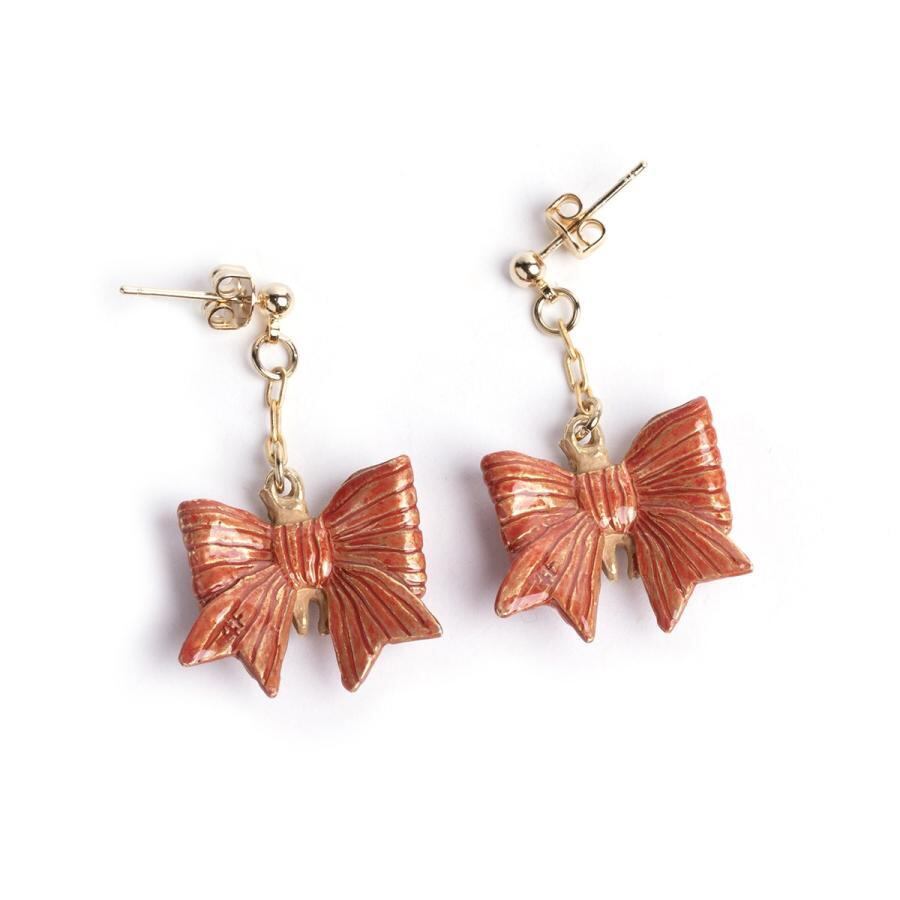 大きなリボンに包まれて綺麗にラッピングされた猫のピアス。